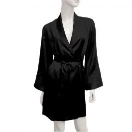 Dieser kurze Seiden-Morgenmantel ist ca. 90 cm lang und hat lange Ärmel.