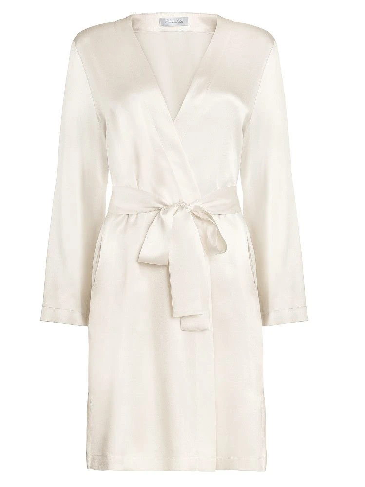 Dieser kurze Seiden-Morgenmantel ist die perfekte Ergänzung zu allen Seiden-Nachtwäschen von Luna di Seta. Der Morgenmantel ist aus Seidensatin aus reiner Seide und hat eine Länge von ca. 100 cm. Die feine Seide fällt elegant und fließend und durch ihre temperaturausgleichenden Eigenschaften ist dieser Morgenmantel sehr angenehm und hautsympathisch. Der kurze Seiden-Morgenmantel hat lange Ärmel und wird mit einem Bindegürtel geschlossen.