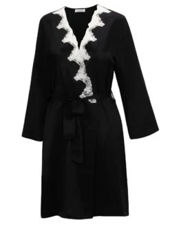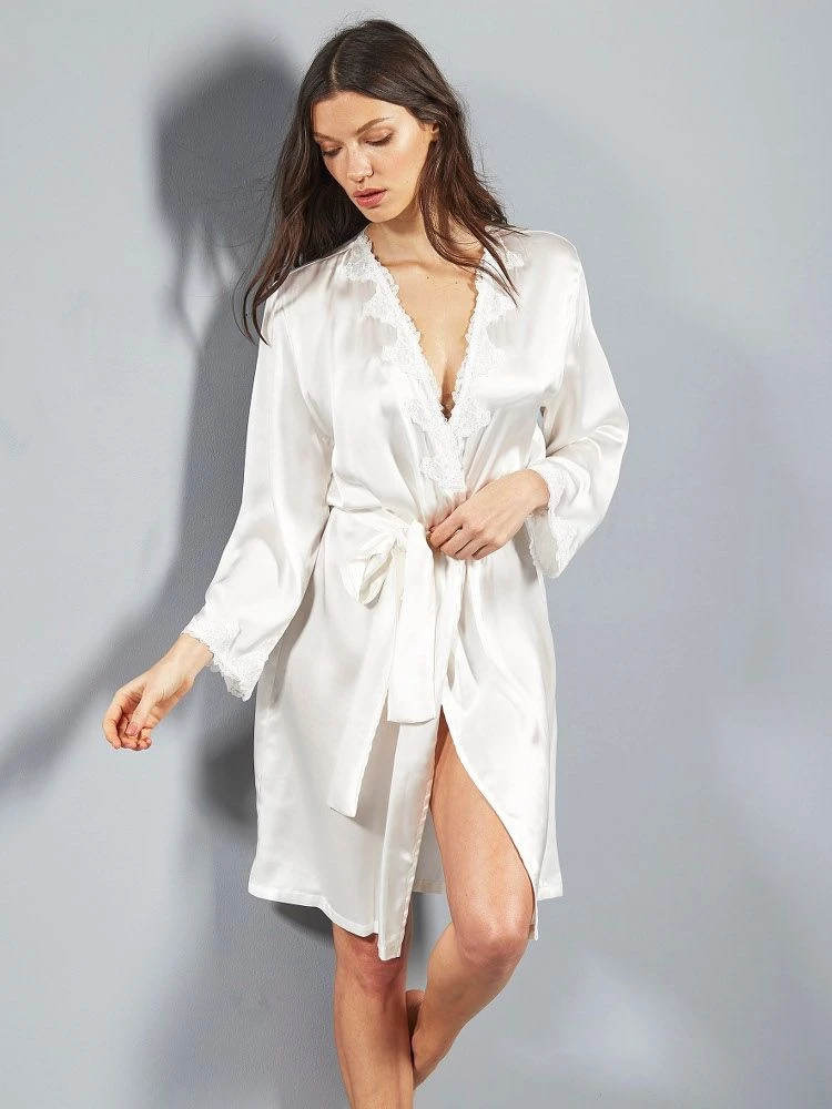 100% Seide Morgenmantel SATIN + LACE Kurz Von Eva B. Bitzer