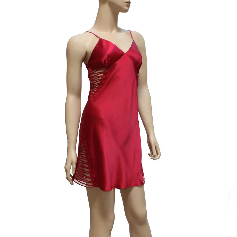 Das kurze Seidennachthemd aus Seiden-Satin hat verfĂŒhrerische, teiltransparente EinsĂ€tze aus TĂŒll. Der feine und sehr weiche TĂŒll ist mit Satin-BĂ€ndern im Soutache Stil benĂ€ht, was diesem Seidennachthemd eine feminine Note verleiht. Dieses Seidennachthemd aus leuchtend roter oder ocean-blauer Seide verfĂŒhrt durch die raffinierte seitlichen transparenten EinsĂ€tze.
