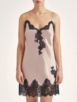 Seiden-Negligé Toi Mon Amour von Aubade in rosa mit schwarz