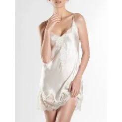 Das Seiden-Negligé ist ca. 88 cm lang und hat feine verstellbare Spaghettiträger. Unten hat es einen ca. 15 cm breiten Spitzensaum aus inkrustierter Spitze. Diese edle Seidenwäsche ist in den folgenden Farben und Größen erhältlich: