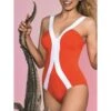 Die Halbschalen-Cups ohne Bügel sind leicht geschäumt. Der Badeanzug ist komplett mit weichem Feinjersey gefüttert. Er ist mit B- oder C- Cup erhältlich. Die Träger werden als Neckholder getragen und das Oberteil wird auf der Rückseite gebunden. Der Badeanzug hat eine beiliegende Schmuckbrosche, die am Decolleté angebracht werden kann.