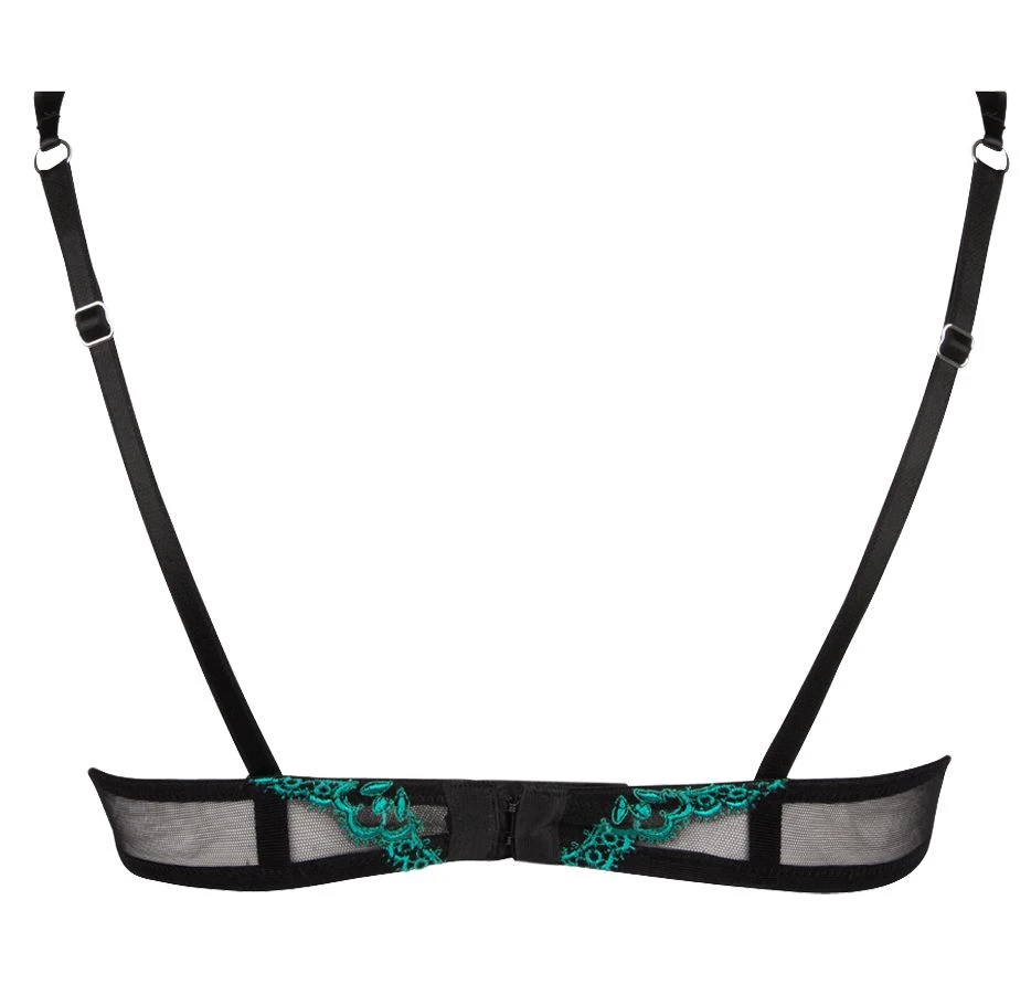 Den verführerischen BH gibt es in der Farbe Noir Vert, einem edlen schwarz mit schimmerndem Türkisgrün. Das Dessousoberteil ist in den Größen 70-85 B bis E erhältlich.