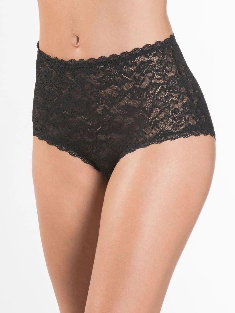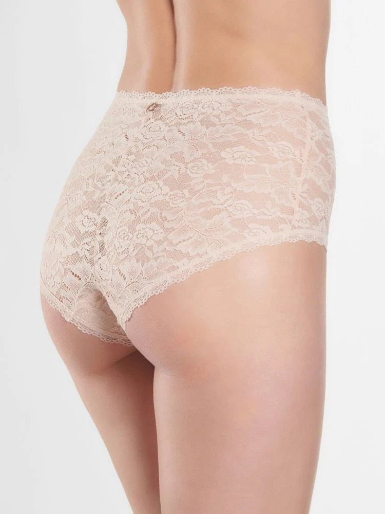Der hoch geschnittene Slip hat elastische AbschlĂĽsse und einen Innenzwickel aus Baumwolle.