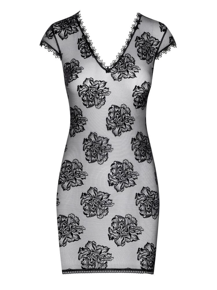 Das verführerische Lingerie Kleidchen aus schwarzem Tüll ist ca. 80 cm lang und erhältlich in den Größen S bis L.