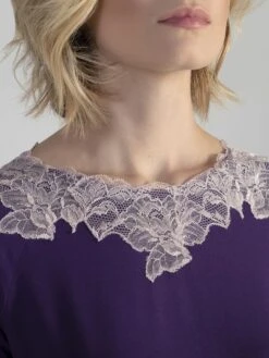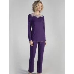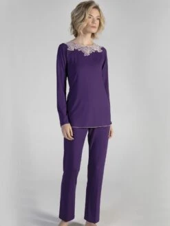 Dieser modische und elegante Pyjama ist bei uns in einem kräftigen lila mit rosa Spitze und in den Größen 36 – 46 erhältlich.