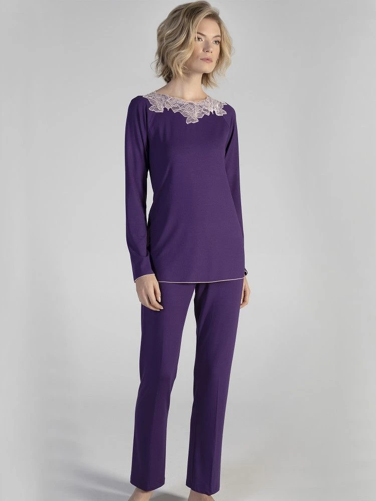 Der Pyjama Violet ist aus besonders weichen und hochwertigen Modal Feinjersey gefertigt. Die weiche Faser ist angenehm und fällt elegant und fließend. Dieser Pyjama ist daher sowohl im Sommer wie im Winter angenehm zu tragen.