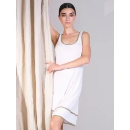 Das halb-lange Nachthemd WKND No. 10 von Verdiani Weekend besteht aus super-weichem Micro-Modal in einer hautsympathischen, elastischen Jersey-Qualität (92% Modal, 8% Elasthan). Für diese Kollektion wird ein besonders hochwertiger Lenzing Tencel® Markenmodal aus österreichischer Produktion verwendet. Das Nachthemd ist Made in Italy und in den Größen 36 bis 42 erhältlich. Dieses bezaubernde Nachtkleid ist ca. 90 cm lang. Es hat breite Träger und kontrastierende Details aus bronzefarbener Wäschespitze.