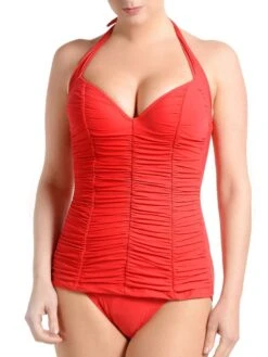 Der Badeanzug ist aus extra-weichem Feinjersey gearbeitet und im vorderen Teil mit für die Marke typischen Raffungen verziert. Die Vorderseite ist komplett doppellagig gearbeitet und im unteren Bereich etwas überlappend gestaltet – hierdurch entsteht der Eindruck eines Tankinis, was den Badeanzug angenehm figur-kaschierend macht. Er ist mit B- oder C-Cup erhältlich. Dieser Badeanzug ist in den Größen 38 bis 46 (deutsche Damengrößen) und den folgenden Farben erhältlich: