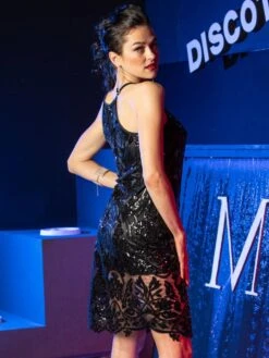 Das Pailletten-Kleid Rouen aus der limitierten RC Private Collection „Notre Dame“ von RCrescentini besteht aus elastischer, schwarzer TĂĽllspitze mit Paillettenverzierung. Die elastischen Satin-Träger sind doppelt ausgefĂĽhrt. Das kurze Kleid ist raffiniert gestaltet aus aus paillettenbesetzter Spitze und hat einen seitlich eingearbeiteten ReiĂźverschluss.