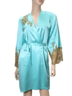 Luxus Seiden-Morgenmantel mit Spitze Jardin kurz Marjolaine