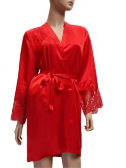 Dieser Seiden-Morgenmantel mit Spitze ist in den Größen 36 bis 46 (deutsche Damengrößen) und den folgenden Farben erhältlich: