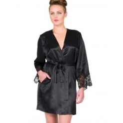 Ein kurzer Morgenmantel der Luxusklasse ist der Seiden- Morgenmantel Jardin der französischen Edel-Marke Marjolaine. Der edle Seidensatin wurde mit exquisiter Leavers- Spitze aus Calais zu einer aufregenden Nachtwäsche verarbeitet.