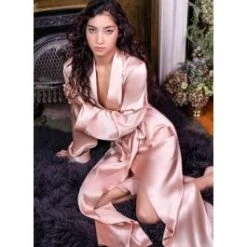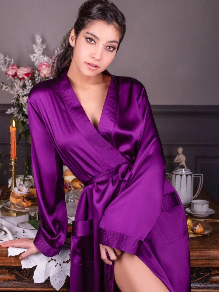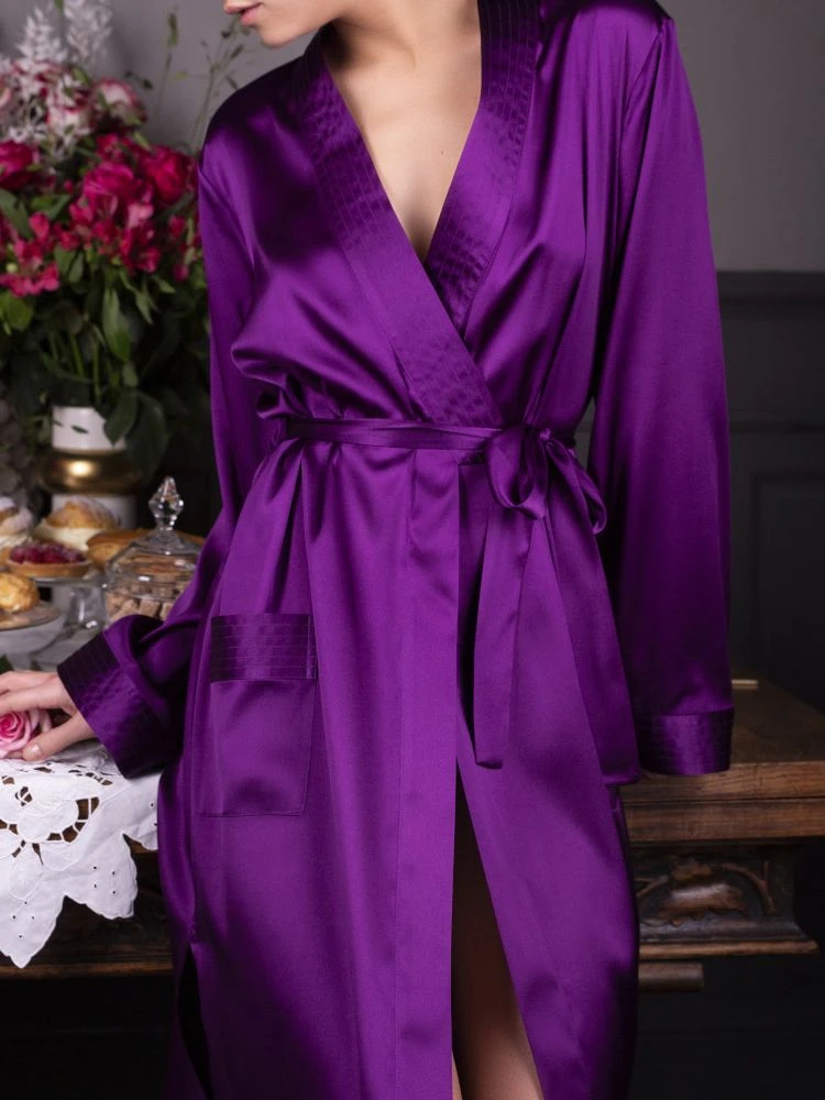 Langer Seidensatin Design Morgenmantel Nelia von Marjolaine