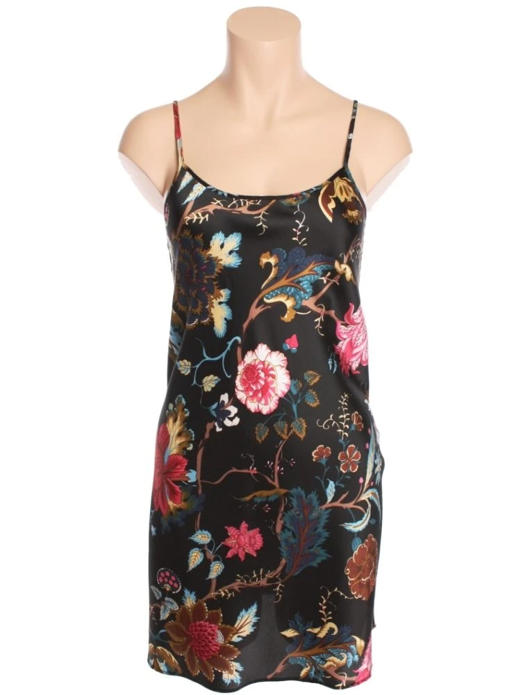 Die perfekte Ergänzung zu dem kurzen Seidennachthemd sind die separat erhältlichen Morgenmäntel von Marjolaine in der Farbe schwarz oder sand oder auch die Teile aus der Fidji Kollektion mit Blumendruck.