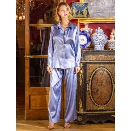 Dieser zeitlos elegante Seidenpyjama hat lange Ärmel und ist in den Größe 36 bis 46 (deutsche Damengrößen) erhältlich.