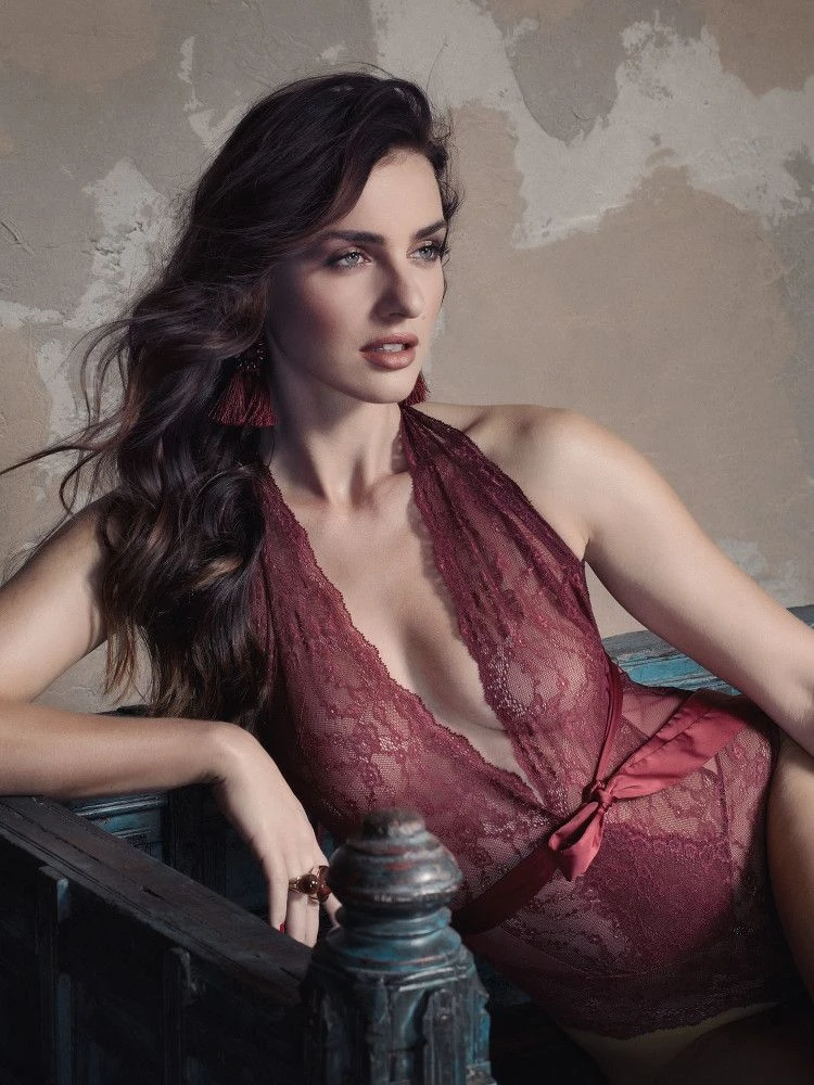 Die Serie „Rosalie“ von Escora verführt mit weicher, floraler Spitze und feinem, transparentem Tüll in einem traumhaften Weinrotä.